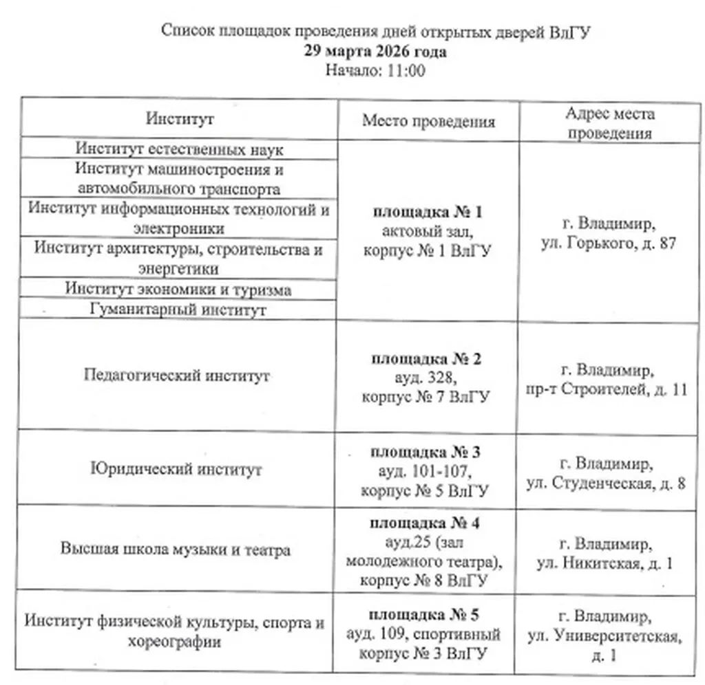 Программа Дня открытых дверей ВлГУ 29 марта 2026 года